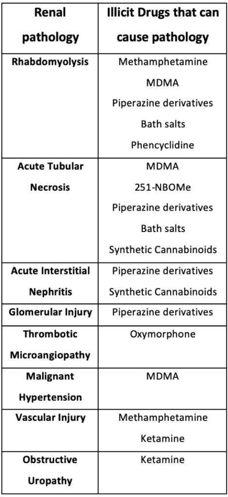 - We often see renal consequences of these substances – here’s a summary of renal pathologies that can occur